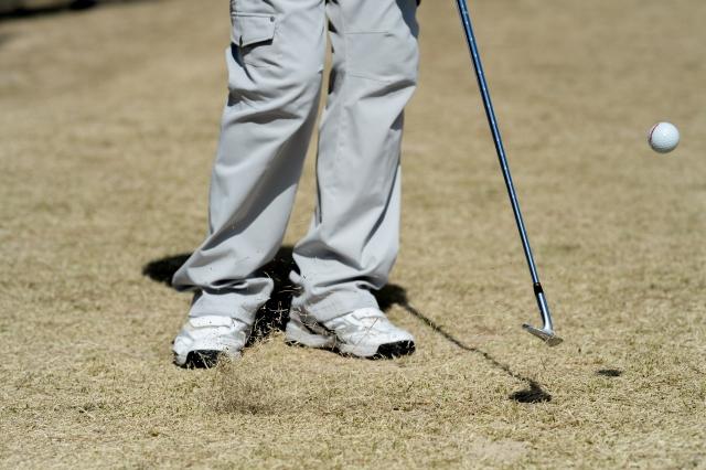また、芝に突っかかりそうな状況でもこの左ヒジを抜く動きを活用すると、ヘッドが抜けて大きなミスになりにくいといわれています。