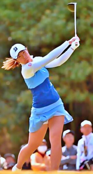 トップオブスイングの位置から振り下ろされたクラブヘッドは、フィニッシュに向かってノンストップでキレイな弧を描いていく。