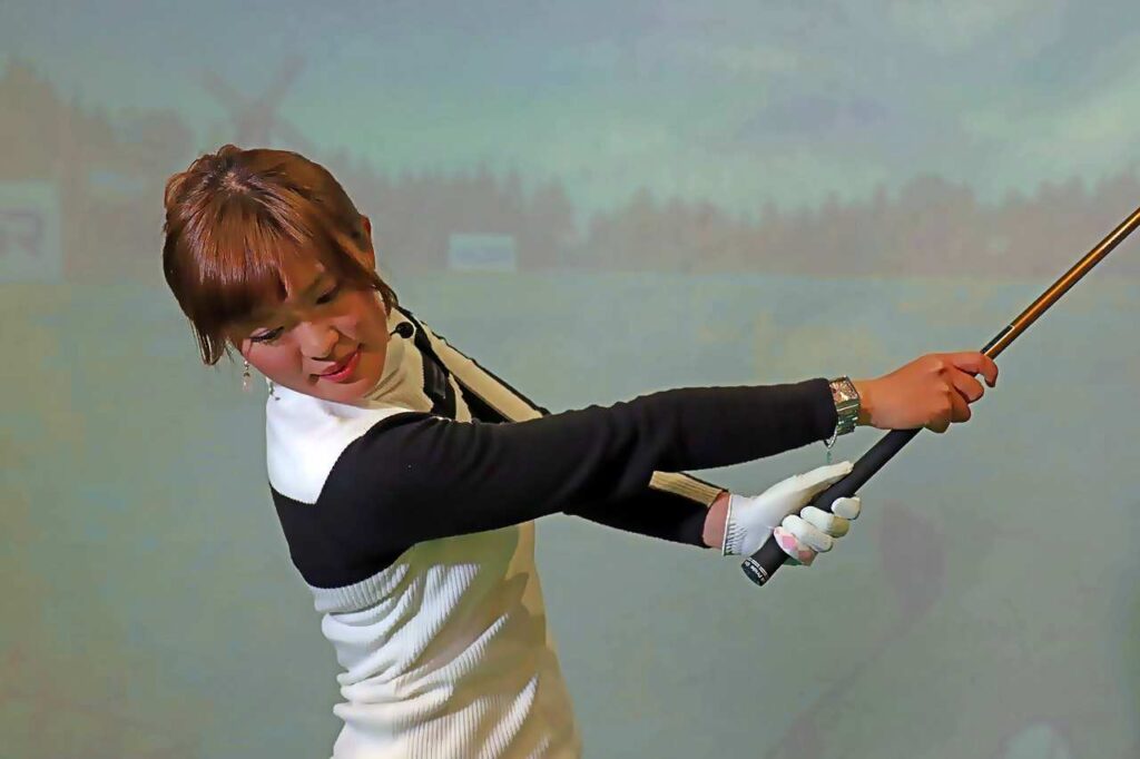 テークバックではクラブを立てて、フォローでは右手が左手を追い越すように振ります。