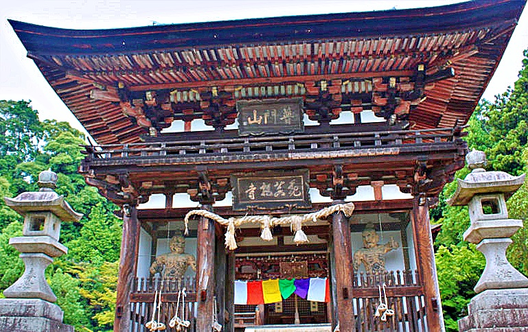 外側左右に室町時代の作といわれる木造の阿像・吽像2躯の金剛力士像、その裏に平安時代後期の作といわれる木造の多聞天と広目天が安置。