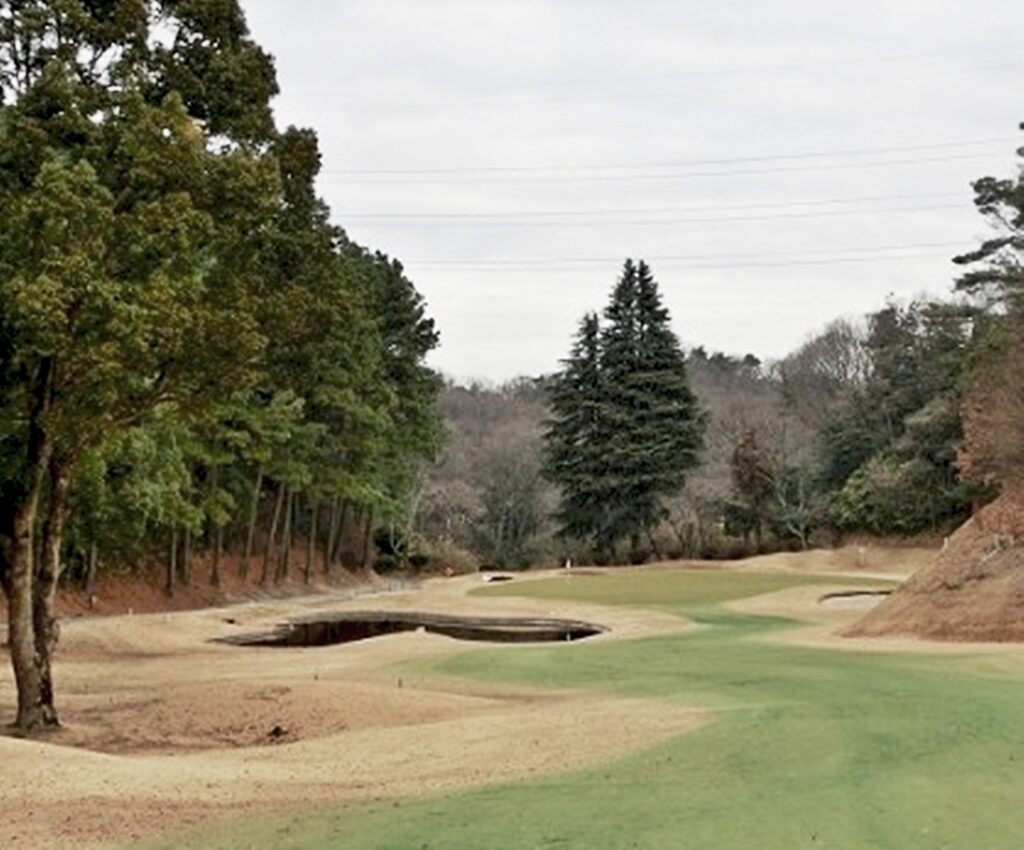 グリーン手前に池を新設し、難易度の高いホールに変わりました。