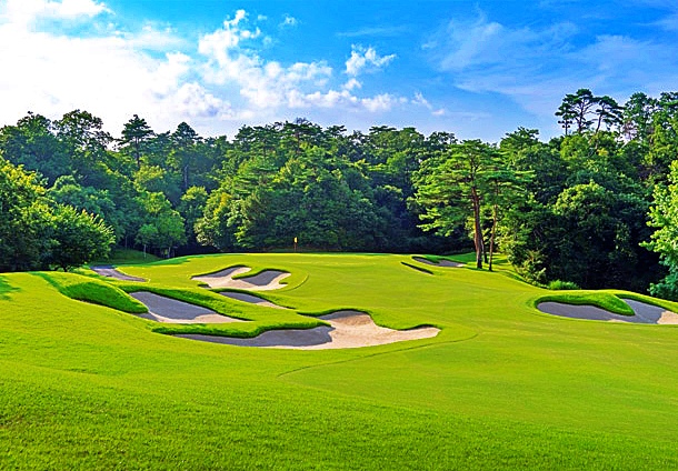 ジャパンクラシックカントリー倶楽部のクイーンコースINは、アーノルド・パーマー氏設計の戦略性の高い丘陵コースです。