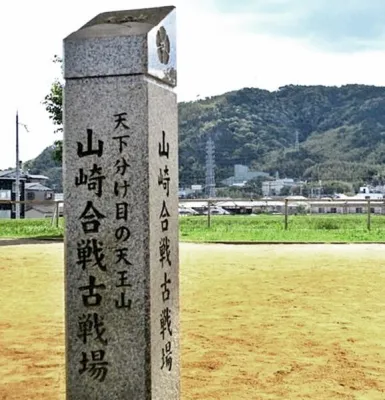 天王山は、京都府乙訓郡大山崎町の山。西側の山腹を、摂津国(現在の大阪府)と山城国(現在の京都府)の国境がよぎる。