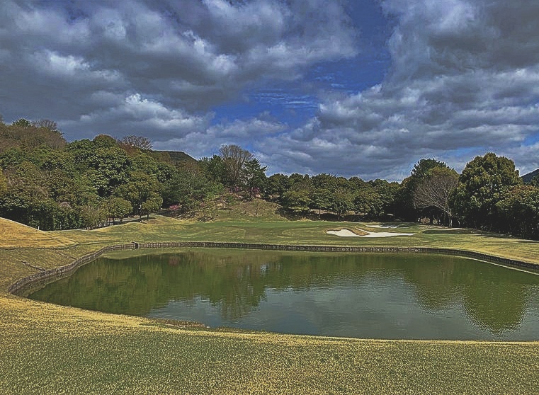 コースのフェアウェイは広めですが、アップダウンの連続で、谷越え、池越えありと変化に富んだコースです。