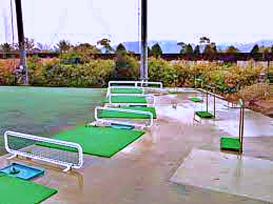 40y 12打席の練習場ではラウンド前の最終調整にご利用いただけます。アプローチ練習場、パティング練習場。