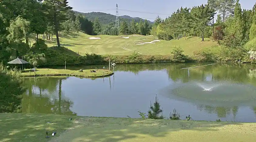 鷲峰山麓と池との絶景を眺めつつ、プレーを楽しむこともできますよ。