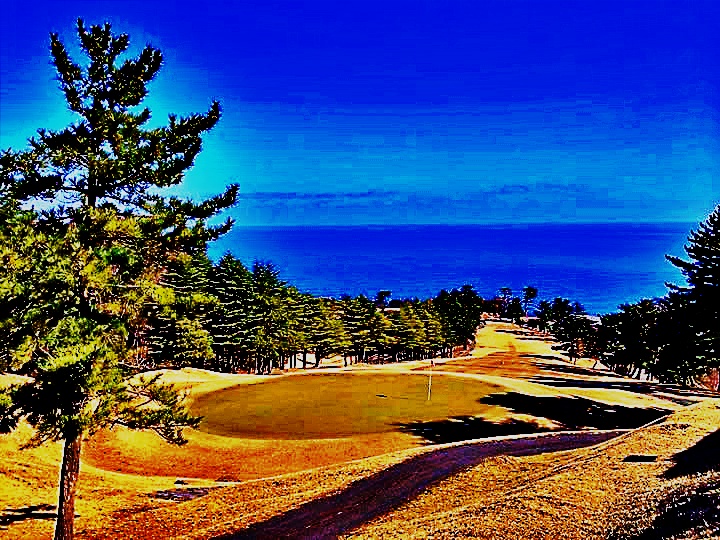 日本海の絶景コース距離が短く戦略性が高い名物谷越えショートホールが待ち受けています。風との戦いが面白いので初心者でも回れる距離ながら上級者でも簡単には攻略できないコース設計です。