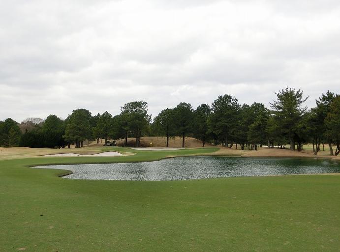 フェアウェイ左サイドにつけてしまうと、セカンドショットが池越えになり、プレッシャーがかかる。グリーンは、右奥から左手前に下る2段グリーンとなっているので、ピンのある段にのせなければパッティングで困難を強いられる。