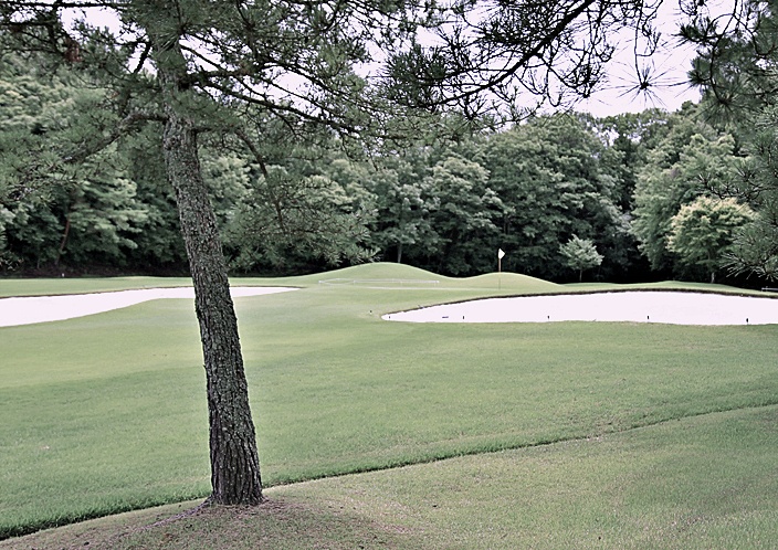 コースはグリーンに近づけば近づくほど、狭まく感じるように目の錯覚を起こさせる様に上手く作られていると思いました。