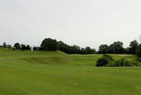 セカンドショットになると緩やかな上り傾斜になり、グリーン面が見えなくなる砲台グリーン。