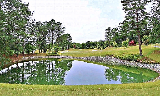 全体的にフラットなコースで松林でセパレートされた自然林豊かなコースに 池やバンカーの増設を行い、より戦略的なコースへと生まれ変わりました。