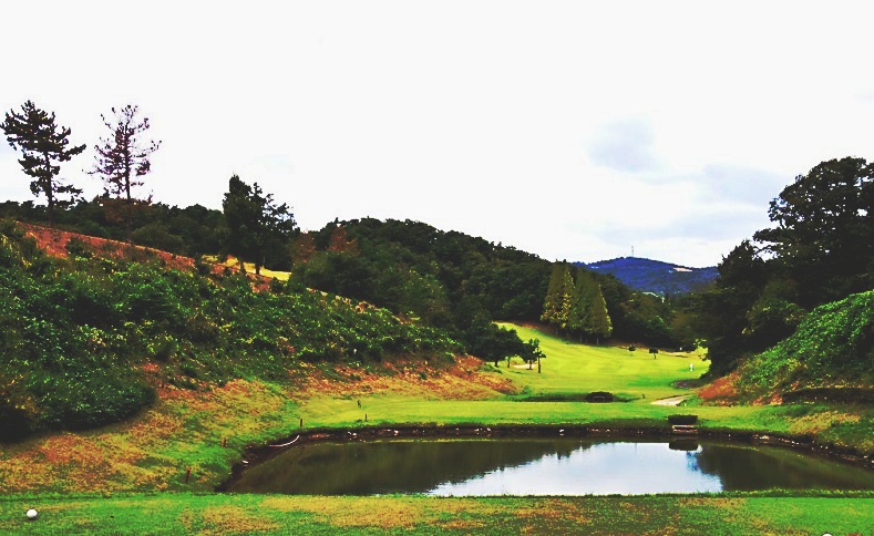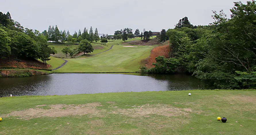 まなづるコース: 4番、7番、9番ホールは池越えや池が多く、雄大で美しい景観が楽しめます。