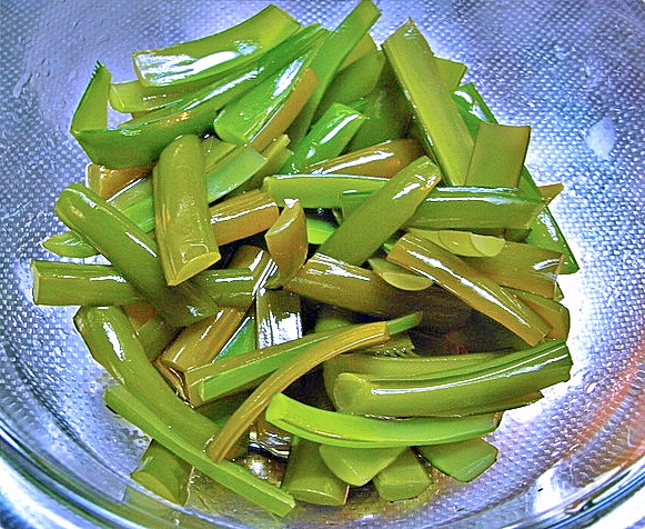 我が家の「茎わかめ」の食べ方は、「かぶら漬け」に茎わかめを入れた「かぶら漬け」の変形なんですよね。