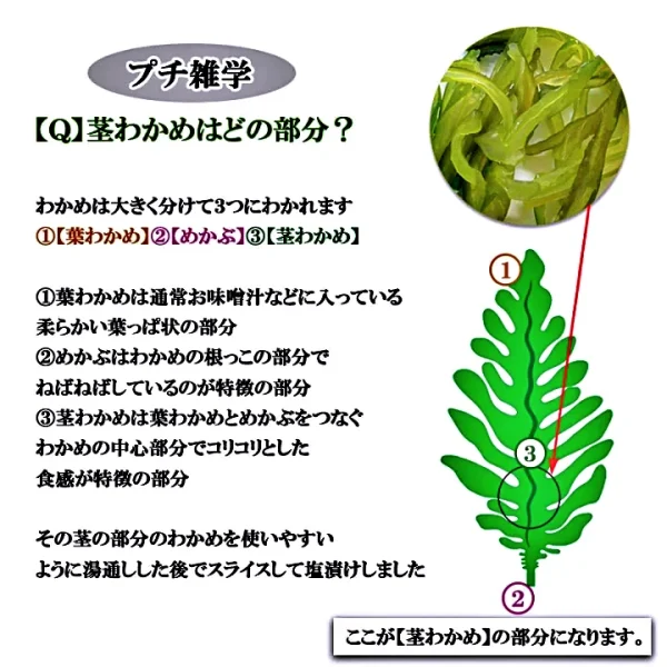 茎わかめとは、わかめの‘芯’の部分をカットして加工した食品のことなんです。