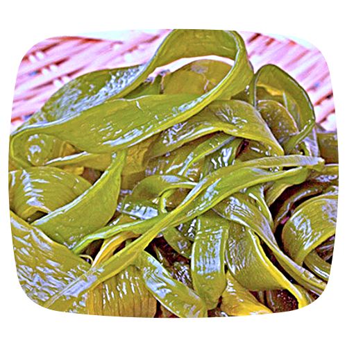 見た目はわかめ(葉の部分)とだいぶ違っていて、わかめより細かくひだがよっていて厚みがあります。