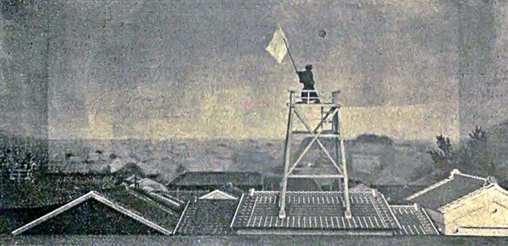 江戸時代後期から、明治・大正時代頃まで、大阪堂島の米相場を各地に伝えるのに「旗振り通信」が使われました。