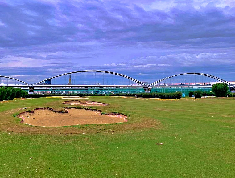 戦略性: グリーン周辺のデザインには現代的なアンジュレーションや池が大胆に取り入れられており、河川敷でありながら美しい景観と攻めごたえを両立し、アスリートゴルファーも楽しめる設計となっています。