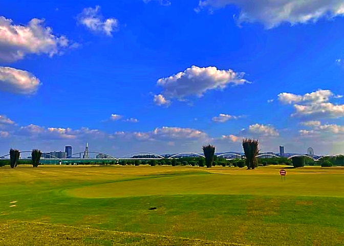 1級河川の淀川の河川敷に広がる、このコースは、全体的にフラットな設計が特徴です。