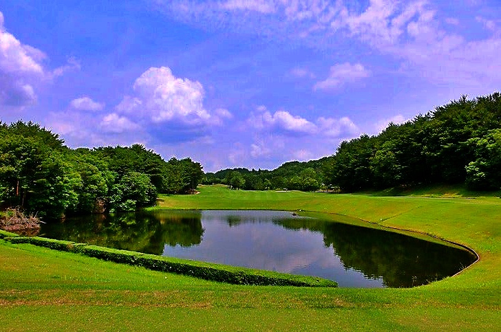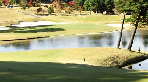 広いフェアウェイにアクセントをつける90個のバンカーと大小12の池の配置が効果的で、この「ABCゴルフ倶楽部」の18ホールは、戦略性と景観の美しさが絶妙なバランスで融合しているコースだと思います。