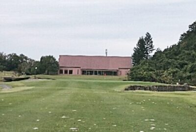 9番ミドルはハウスを臨む打ち上げのミドルホールで、フェアウェイ左サイドのセカンド地点に特徴的な石積みがあって注意が必要で他とは違った趣がある。