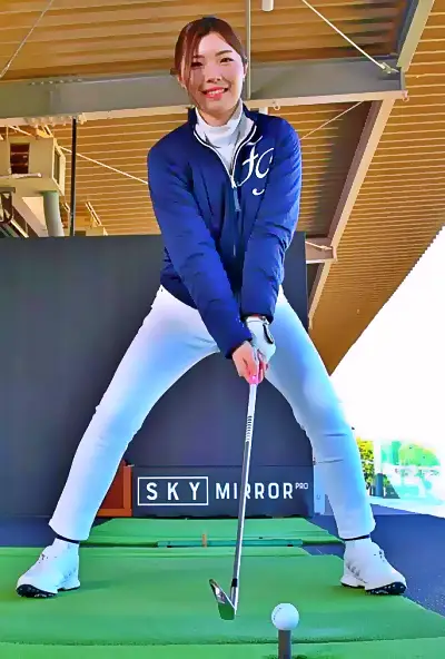 ちょうど相撲のシコのようなフォームでスイングすることでボールとの距離を変えず、ヘッドアップ解消にもつながります。