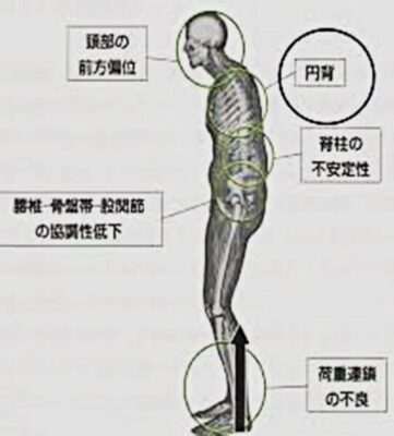 加齢に伴い重力に逆らって体を支えたり、姿勢を維持する筋肉が衰えやすいということです。