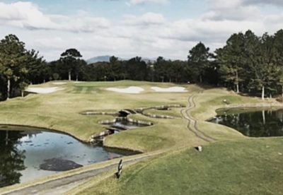 名物の18番ホールをはじめ、谷越え・池越えホールが多く、プレッシャーのかかるホールが続く。