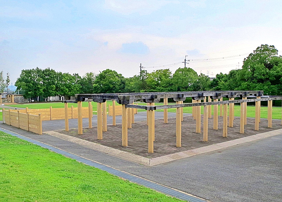 この遺跡は、5世紀の小規模な古墳と、6世紀後半から7世紀にかけての集落遺構、そして7世紀以降の整然と配置された大型の掘立柱建物群からなる官衙遺構などが重なりあう複合遺跡となっている。