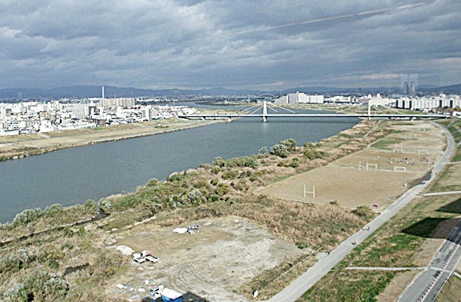 阪湾に流れ込む。
