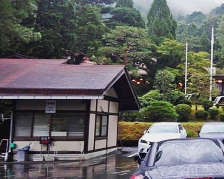チョット狭い道を進むと、直ぐにゴルフ場、クラブハウス前に車を止めると思いきやポーター待機の門構えの前で、キャリーバック&ゴルフバックを預けて、駐車場へ止めてゴルフバックを持ってクラブハウスへ・・・! これってクラブハウスと一瞬思いましたが、クラブハウスでした。