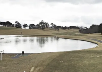 池越えの美しいロケーションだが、風の読みと正確なショットが要求される、