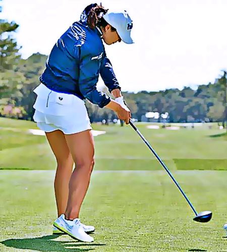 見た目にはあまりでませんが、実はスイングをするときに股関節と太ももの大腿骨は大きく回転をしています。ここが止まってしまうと下半身で生まれた力が上半身にうまく伝わりません。これをうまく使うには、まずアドレスで股関節を使える状態をつくらなければいけません。
