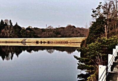 加東市。の野池群のひとつ。周囲600m〜1kmクラスの中規模の溜め池が三連になっており、右岸側を二車線道路が通る。