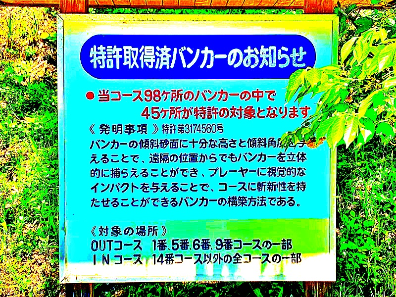 98箇所あるバンカーのうち45箇所が特許を取得しており、特に「白い砂が鮮やかな美しいバンカー」がプレーヤーに視覚的なインパクトを与えてくれます。