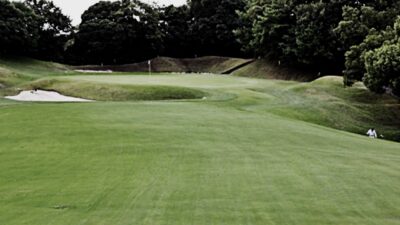 アップダウンが激しく顎の高いバンカーは厳しく難しく砂の量が少し遠慮気味のコースです。